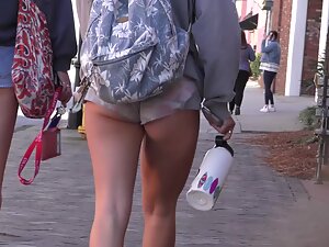 Voyeur is rushing to keep pace with this trio of hotties in shorts and it caused his candid camera to shake, but you'll still see how all three of their lovely asses got a wedgie situation going on. Short of each of them is going deep in their butt crack and one of them is even plucking it out.
