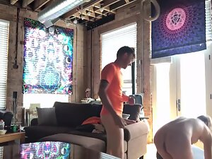 This guy got those athletic rings in his apartment and he finally found a hottie that is willing to hold on to it while he fucks her from behind. They had a sex fail at first and then they managed to pick up the pace and fuck properly but the camera malfunctioned after a little while.