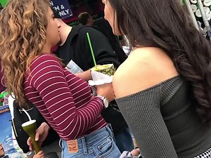 These two teen friends got similar body shape but each of them radiate a different kind of sex appeal. Curly haired girl got a heartwarming smile that will make you melt from inside and the black haired one is more like a classical beauty. It would be really a hard choice to make on which one is hotter and we thank the voyeur for standing behind them for so long.