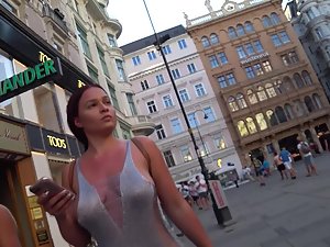 Both of these two tourist girls are smoking hot but when you see the dress that the right girl is wearing, you'll go crazy for her. She got an amazing curvy body with wide hips and big breasts and that unique looking dress is barely covering any of it. Her sideboobs are nicely visible and voyeur made a circle around her to see it all.
