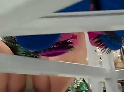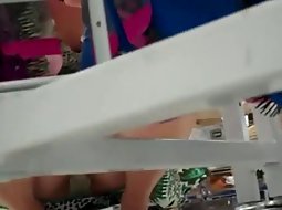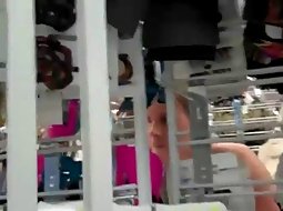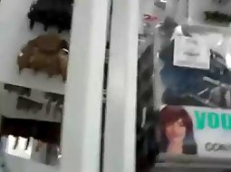 I noticed she was checking the bottom shelf and I also noticed her legs are spread wide while doing so. I rushed around the shelf and filmed her with my phone camera while she was looking for stuff to buy.