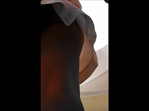 She looks lovely in her short dress and she got totally distracted when she checked out what a street vendor sells and that gave the voyeur opportunity to peep inside her upskirt. Her ass cheeks look yummy when her crack swallows her black panties.