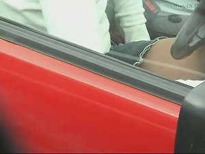 See the smug blonde that chews bubblegum as she approaches the voyeur's position? Look closely because this voyeur will demonstrate the true meaning of smart candid camera position. He films her self satisfied face when she approaches and then moves the camera a bit down when she sits in her car. He caught a nice frontal upskirt of her white panties in the moment before she closed the door.