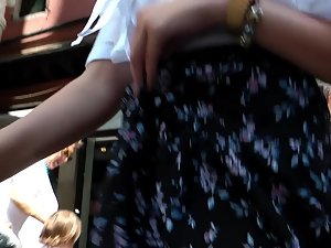 She is young, pretty and her skinny legs are just too attractive for a voyeur to miss out his opportunity. Voyeur follows her through the narrow streets and he manages to get so close that he saw her cute blueish panties in upskirt. Her panties were tucked in her ass crack and even though her pussy is hidden, you'll realize it's clean and smooth, with no pubes to be found down there.