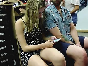 This shoe store was packed with teenage darlings and I just had to film all I could. First I caught a delightful little blonde, that kept bending over while trying shoes and I saw glimpses of her ass cheeks under miniskirt. Later I filmed a beautiful brunette that cleaned her sexy toes and feet before trying shoes.