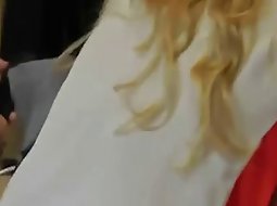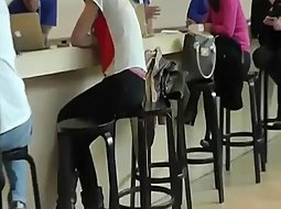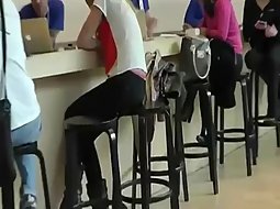 Visible teen thong in a coffee bar