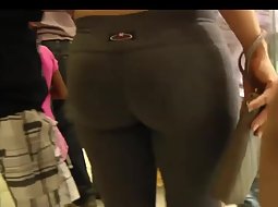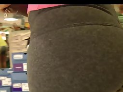 This voyeur followed a girl across the whole store and filmed her majestic booty wiggle as she walks even from an extreme close up view. That tattoo peaking out of her tight pants makes her even more sexy.