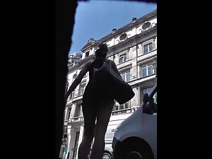 She looks sexy in those tiny black shorts and they reveal her long legs and even a bit of her firm ass cheeks. Voyeur is discreetly following her with a candid camera tucked in his bag and she has no clue that he caught every possible angle of her on the street.