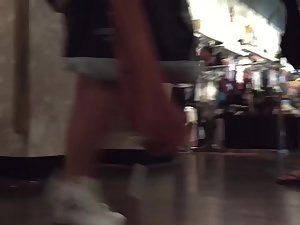 Voyeur follows sexy shopper in cutoff shorts