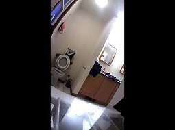 This fella got a sweet thing going on with his wife. He made a compilation of videos he secretly took by placing a hidden camera in the bathroom and then coming in there to fuck his fully unaware chubby wife.