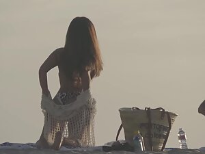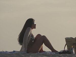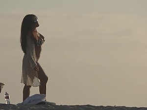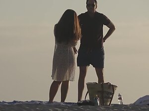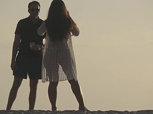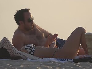 Looks like that lucky guy can't get enough of his latina girlfriend. They are enjoying a romantic evening on the beach, a bit of touching and kissing and a whole lot of posing for the camera. Seems she really wanted some sexy photos of herself in the bikini.