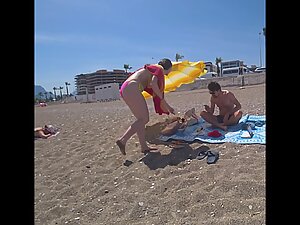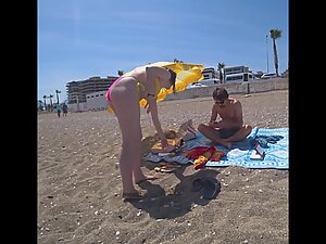 Voyeur's candid camera is neatly hidden on his person while he is at the beach and he made sure to make a long video of someone's curvy girlfriend. Her boyfriend is right there on the towel and he has no clue that his thick girlfriend is getting inspected like never before in her life.