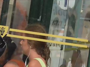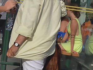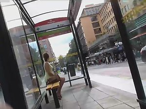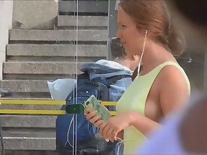This teen girl is like a voyeur spectacle. You'll find something sexy from every angle you look. Firstly, she wore that summer dress without a bra, so you'll see pale skin of her sideboob. Secondly, that dress is a bit transparent so you'll see she got a thong between her round ass cheeks. Gorgeous all together.