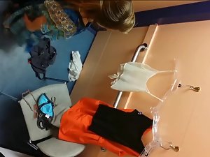 It's obvious that this astonishing woman is very classy, judging by the colorful simple dress she is trying out in the fitting room. That being said, it's even sweeter to see the naked breasts of a classy woman, specially when it's without her knowledge. Voyeur took a sneaky peek from above the fitting room wall, right when she was undressing the new dress in the store.