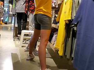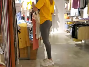 When a voyeur shops for clothes, you can be sure that the clothes is actually the last thing on his mind. This guy entered a clothes store that has a bunch of hot girls working there and he made sure to be a demanding customer that gets them to walk around while he keeps filming their pretty faces and lovely round asses with his candid camera. All the girls in yellow shirts are employed by the store and he examined them all.