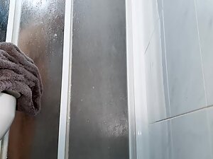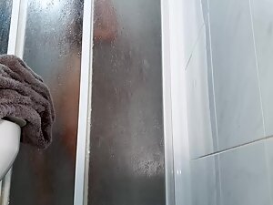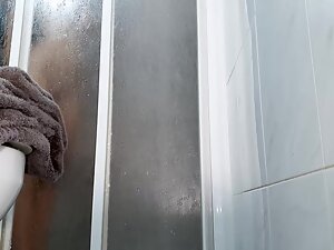 Watching her through the hidden camera is amazing and even kind of seductive, as you wait for her to finish with shower and shaving her legs. Once she finally finishes, she opens up the blurry shower door and hidden camera gets a good look at her sexy body. Her pussy is also shaved smooth and she got a sexy tattoo above her hip.