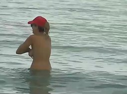 My wife did a neat exhibition on the nudist beach. She was sunbathing and she made sure to show off her entire body, in and out of water. It didn't take too long for a guy to get crazy horny just by watching her.